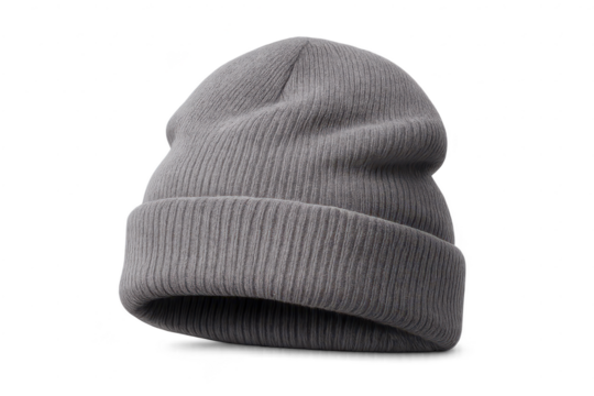 Gray Beanie Hat Close-Up Image with transparent background for product ads