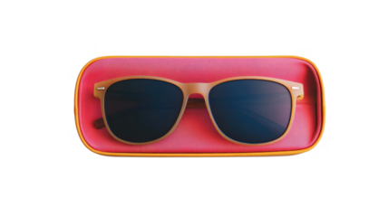 Stylish sunglasses resting in a vibrant case ready for summer adventures at the beach or outdoor events on transparent background