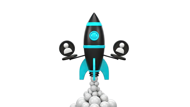 Employment announcement with rocket and hiring text on transparent background