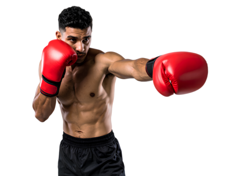 Portrait of Hispanic Male Boxer Throwing a Powerful Punch, Transparent Background PNG