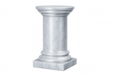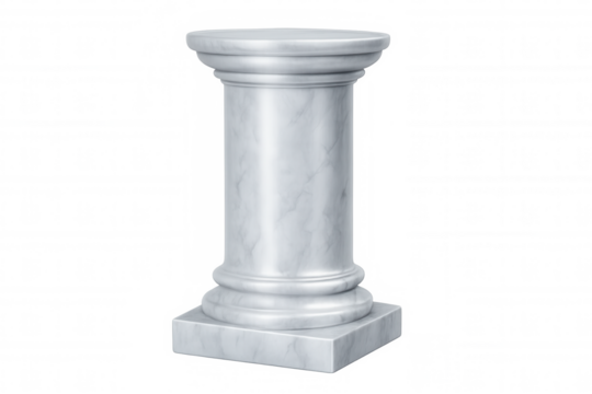Realistic white marble column standing on a transparent background, perfect for architectural visualizations or historical representations