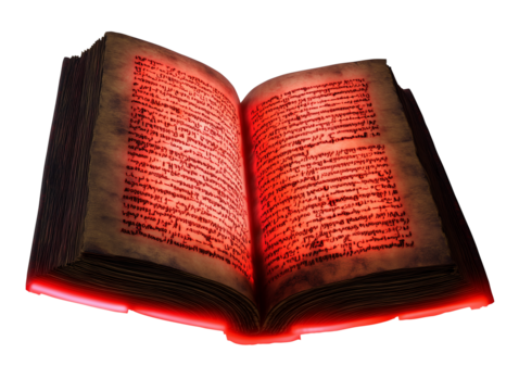 Vintage book with red text on off-white parchment, transparent background