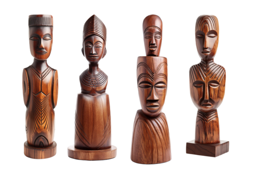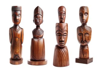 Collection wooden african sculpture isolated on a transparent or white background