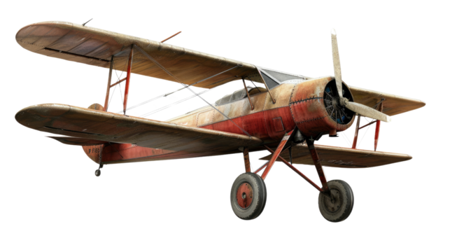 Vintage Airplane in Flight: A meticulously detailed, antique biplane with a classic design is showcased, evoking nostalgia and the spirit of aviation's golden age.