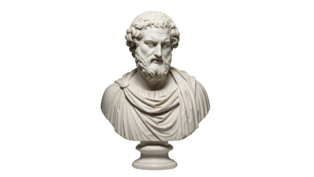 Bust of bearded philosopher isolated PNG on transparent background, ancient Greek sculpture for history and art projects