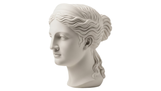 Elegant female bust statue isolated on transparent background, classical sculpture in PNG format for art and design projects
