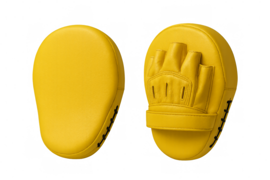 Yellow punching mitts for boxing training on transparent background