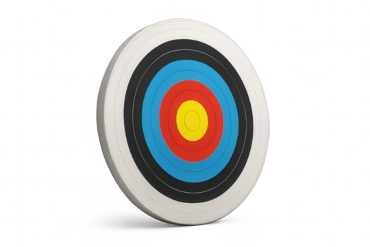 Archery target standing, colorful rings visualizing goal achievement, accuracy, precision, and business objective success concept