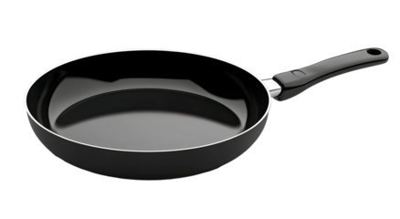 Glossy black nonstick frying pan with gray trim and dark handle