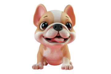 Happy 3d cartoon bulldog isolated on png background.