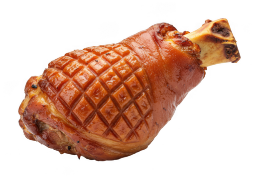 Slow roasted glazed ham hock isolated on transparent background