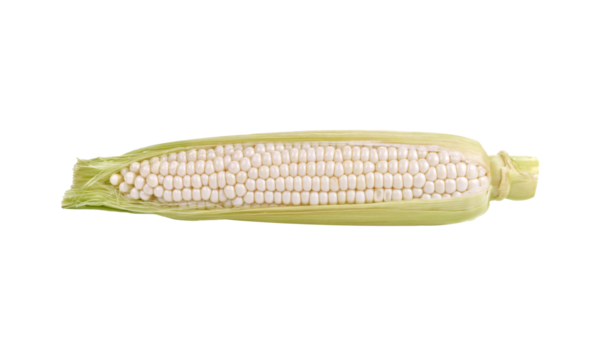 Pure white corn isolated on white background, Pure white Hokkaido corn on White Background High resolution photography, PNG File.