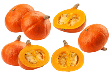 Bright Orange Hokkaido Pumpkin Halves Cut Open Fresh Harvested Isolated on Transparent Background