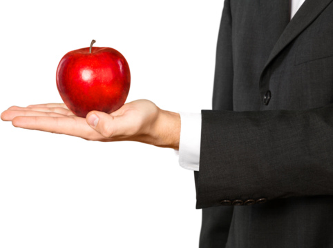 Business hand holds red apple