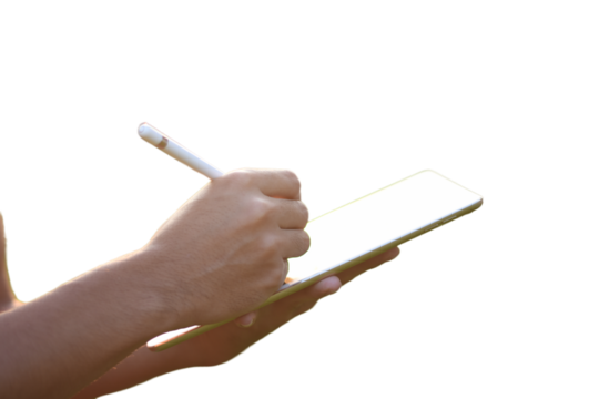 Hand holding paintbrush, preparing for artistic creation against transparent backdrop, ready to begin painting process