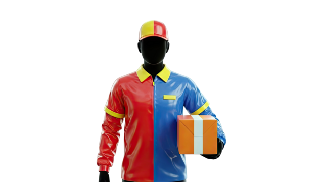 Transparent delivery person holding pizza boxes in casual uniform