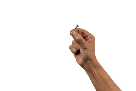 Female hand holding screwdriver, repair tools isolated on transparent background.