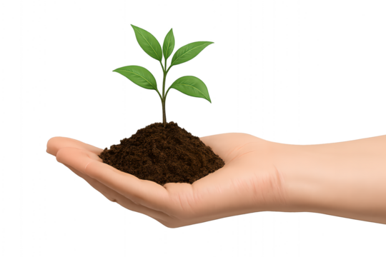 Hands holding earth and growing plants symbolizing environmental protection and sustainability