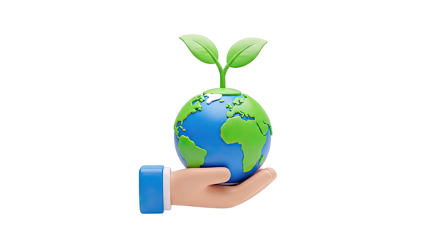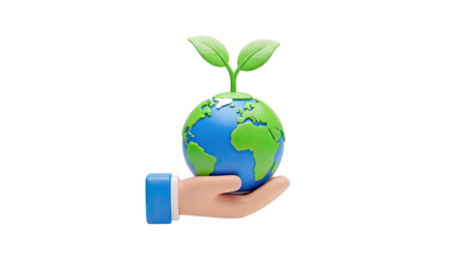 Earth day illustration with globe and hands on transparent background