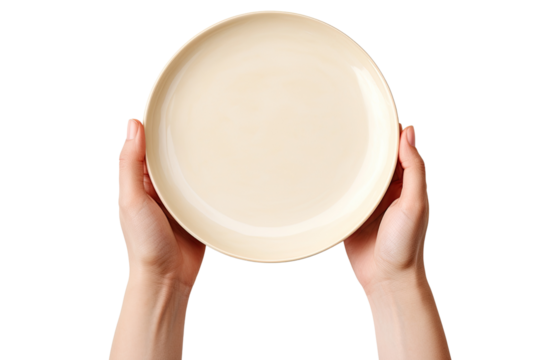 Hands holding a plate cut out transparent isolated on white background ,PNG file.
