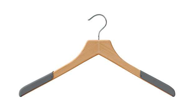 Wooden Hanger: A classic wooden clothes hanger, elegantly crafted and ready to hold garments, symbolizing simplicity and functionality.