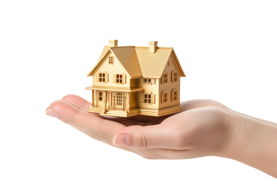model house in an open hand – symbol of home ownership and real estate on transparent background