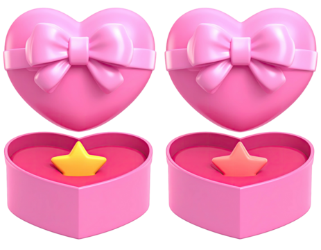 Two pink heart boxes with bows, each holding a star