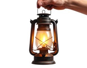 Guiding Light: A hand delicately holds a vintage lantern illuminating with warm, inviting light. The lantern's antique design creates a sense of nostalgia, the image symbolizes guidance.