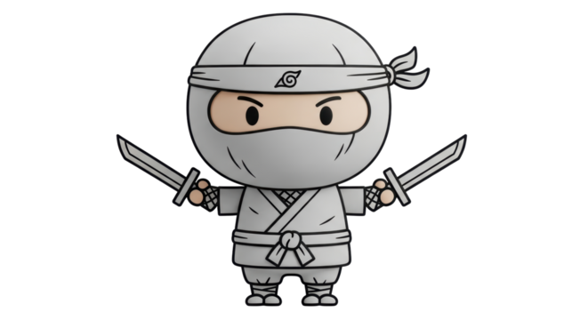 Isolated Cute Ninja Character Holding Swords Ready for Action for Commercial Use Graphic