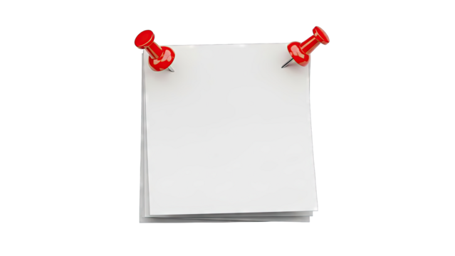 of three sticky notes, each with a different color and a red push pin holding them up on a transparent background