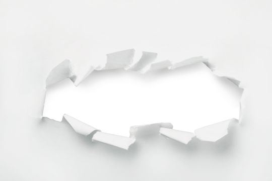White thick paper, torn in the middle with an empty hole. And an empty background behind