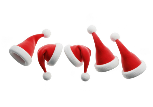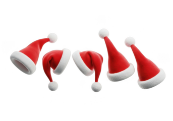 Red santa hat with white fluffy brim and pompom, isolated on transparent background