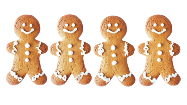 Gingerbread Men Lined up on a Table Decorated for the Holidays Generative AI