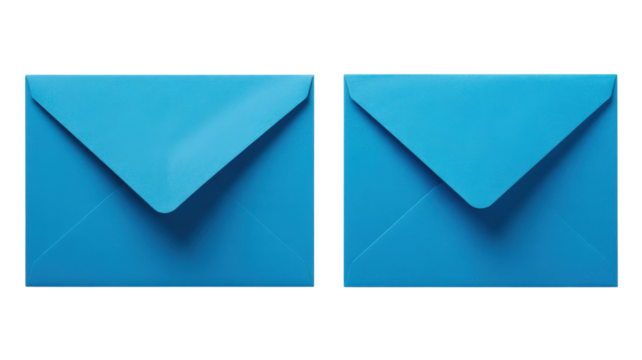 Two blue envelopes. Mail envelopes. Blue paper envelopes.