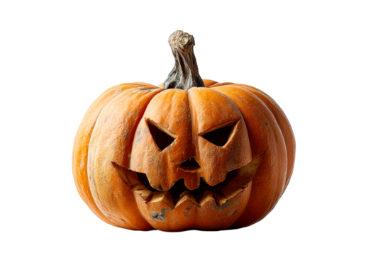 Three cartoon Halloween Jack-o-lanterns showing various spooky and funny expressions for holiday decoration isolated on transparent background