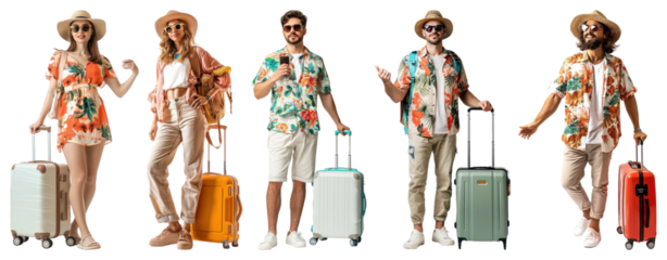 PNG Stylish travelers with colorful luggage, element set on transparent background