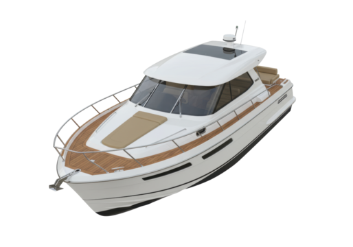 Isolated power boat yacht. Luxurious transport for leisure and recreation on the water