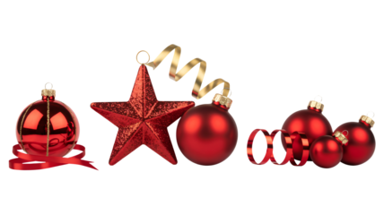 Festive flying red and gold gifts with ribbons and decorations, perfect for Christmas or birthday celebration theme isolated on white background