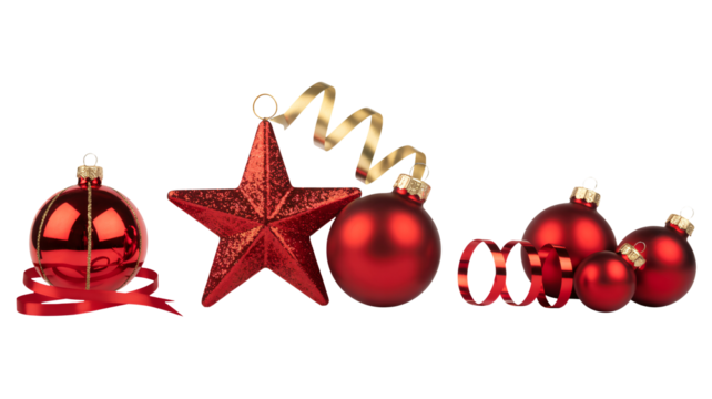 Festive decorations featuring red and gold ornaments with pinecones and greenery for holiday celebrations