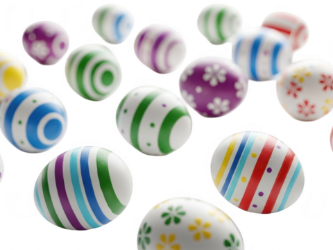 Decorative easter eggs with colorful patterns isolated on transparent background for holiday and springtime themes