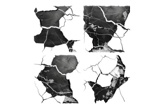Set of black cracks isolated on white background