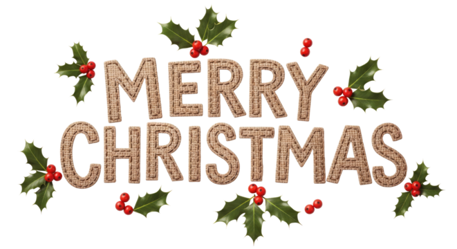 Elegant 'Christmas Blessings' text, beautifully adorned with traditional holly and vibrant red berries. Perfect for festive holiday greetings, winter celebrations, cards, banners, and seasonal desi