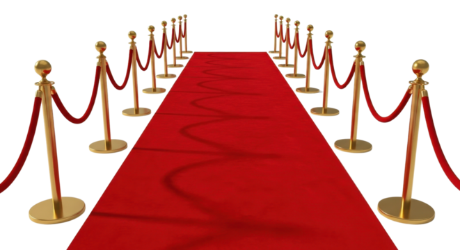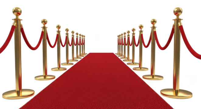 Red carpet entrance with golden stanchions isolated PNG with Transparent Background
