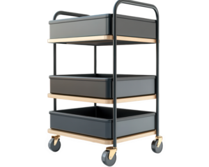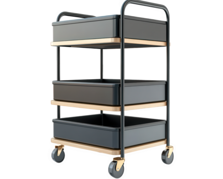 Compact rolling office cart with storage shelves, featuring three spacious bins and sleek design. Ideal for organizing office supplies or home essentials efficiently