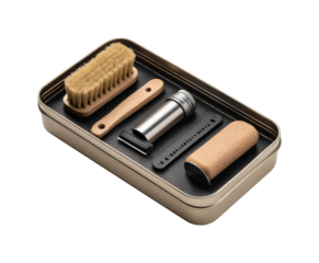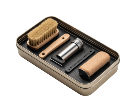 Grooming essentials kit home accessories compact space top view personal care tools isolated on transparent background, png