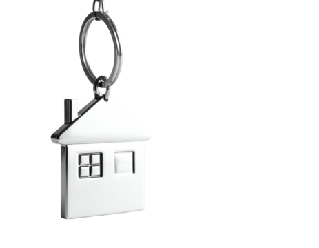A key and house shaped keyring on transparent background