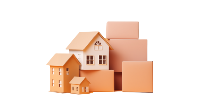 cardboard house made from moving boxes. real estate concept. png object isolated on transparent background, mockup, design, template, layout, sticker