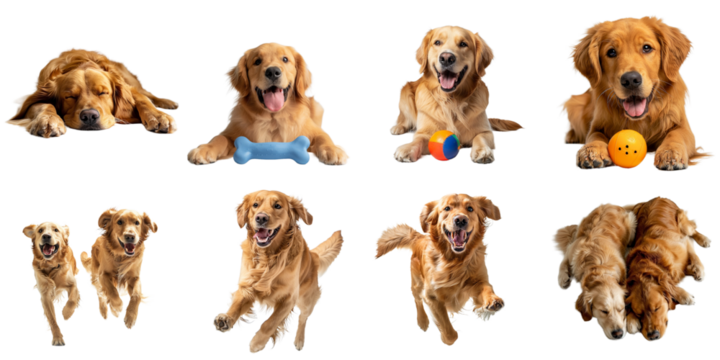 Golden retriever dog transparent isolated collection in 3d png for all purpose.