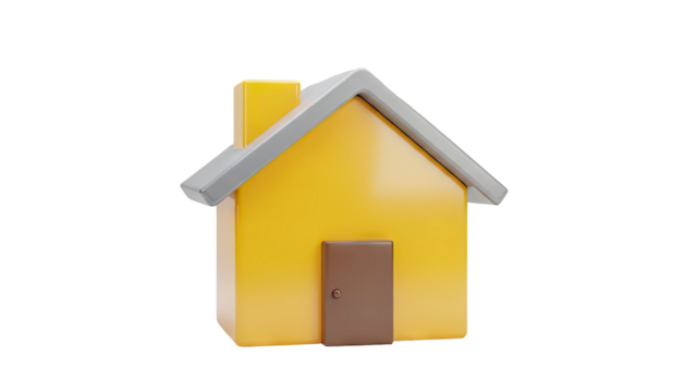 3D Yellow House Icon with Brown Door and Gray Roof