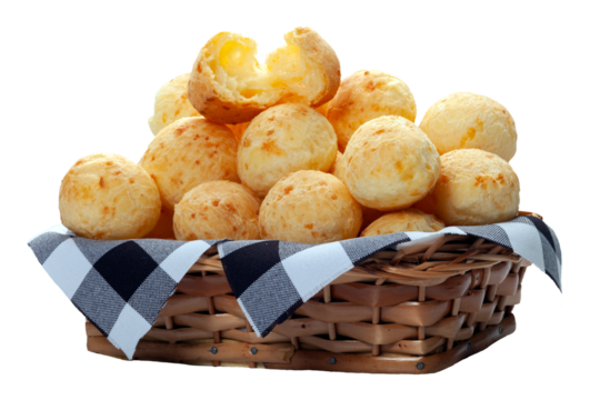Freshly baked loaf of sourdough bread with golden crust and dusting of flour, resting on a patterned linen cloth against a transparent background